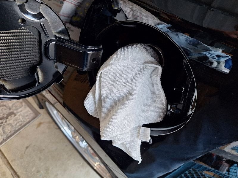 Wipe the inside area of the filler neck, gas cap area only after the gas cap has been reinstalled