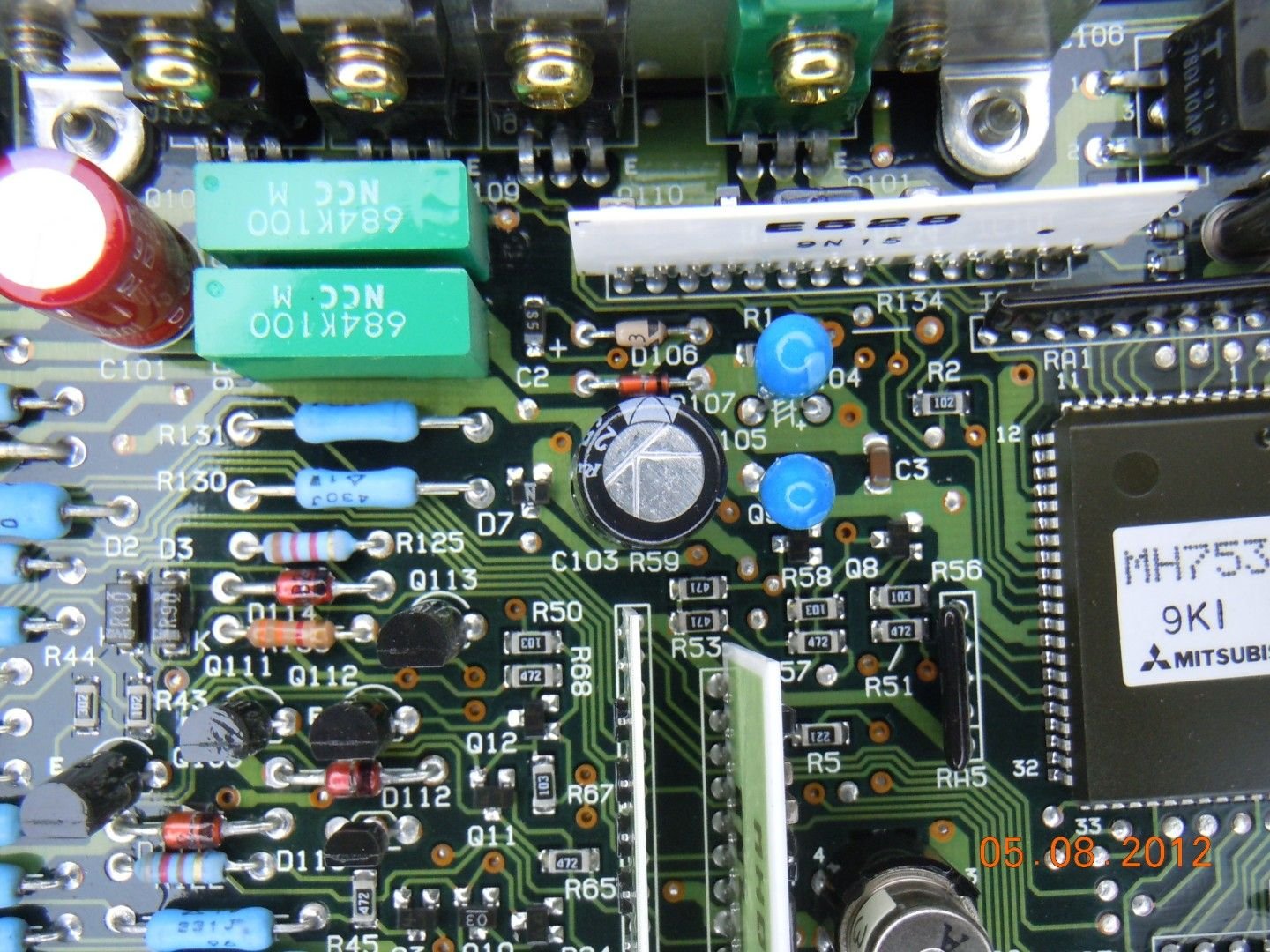 You can disconnect the truck battery, remove the right side kick panel cover, remove the ECU, and open the case to have a look at the board. Here is a couple of pictures of what a good B2600i ECU board (very similar to the B2200 board) looks like......you can see the original red and the original black capacitors at the top middle portion of the board: