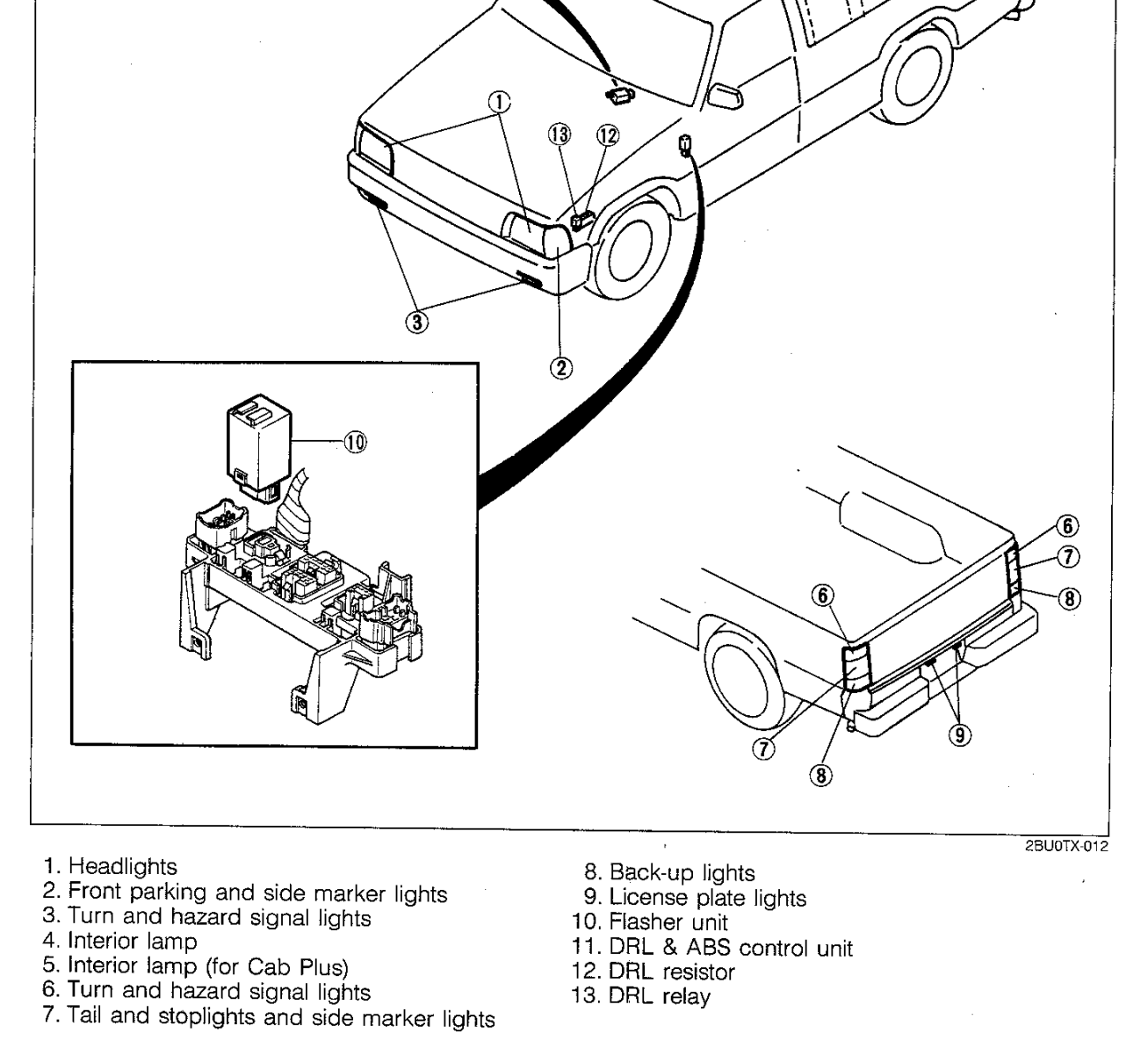 My left turn signal works front and back and my right turn signal works front and back but my hazard lights only flash on the left side. Is there a separate flasher for hazard lights that needs replacing? Sorry for the simple question but I have yet to find a repair manual for my truck so any advice on that would also be helpful. thank you