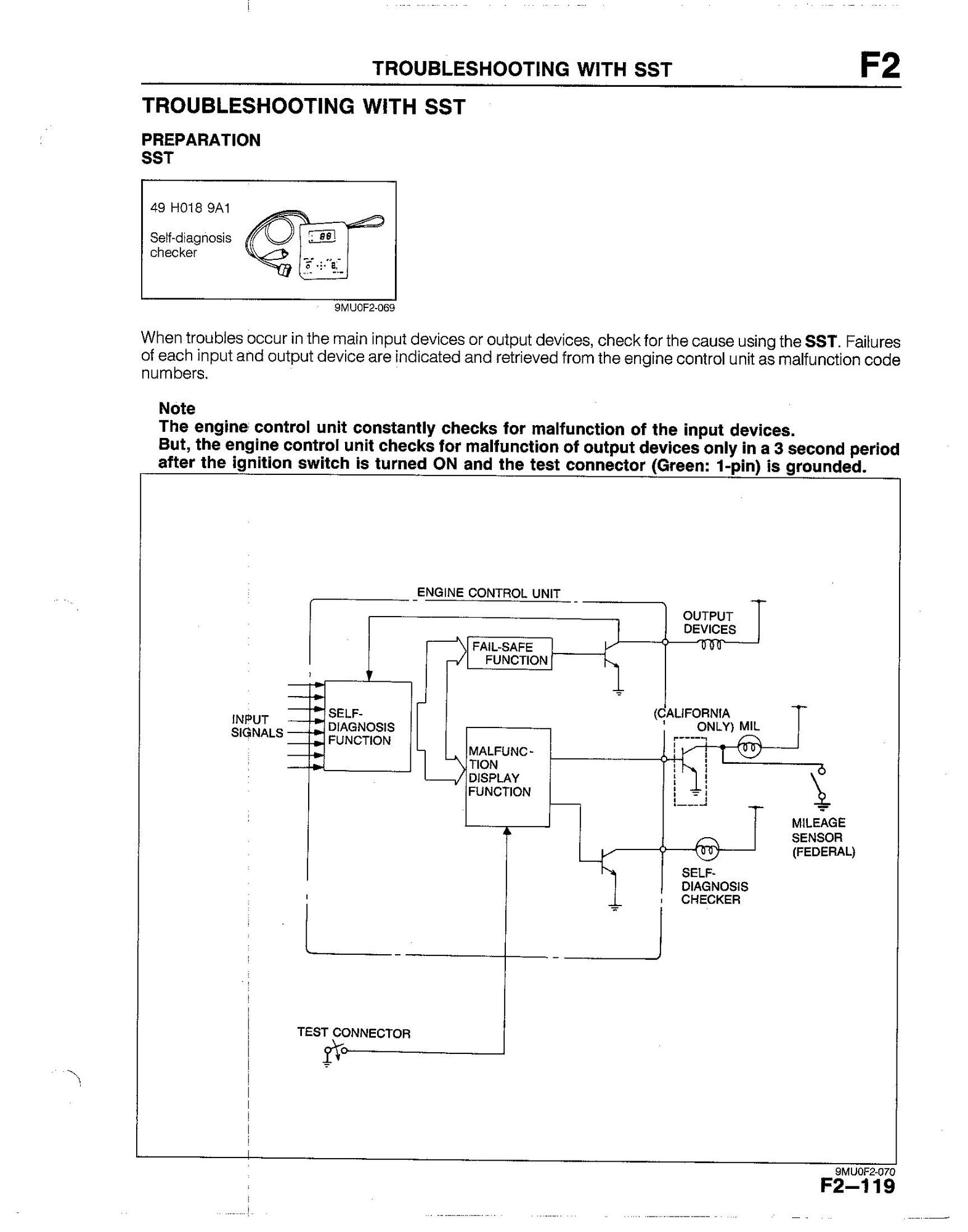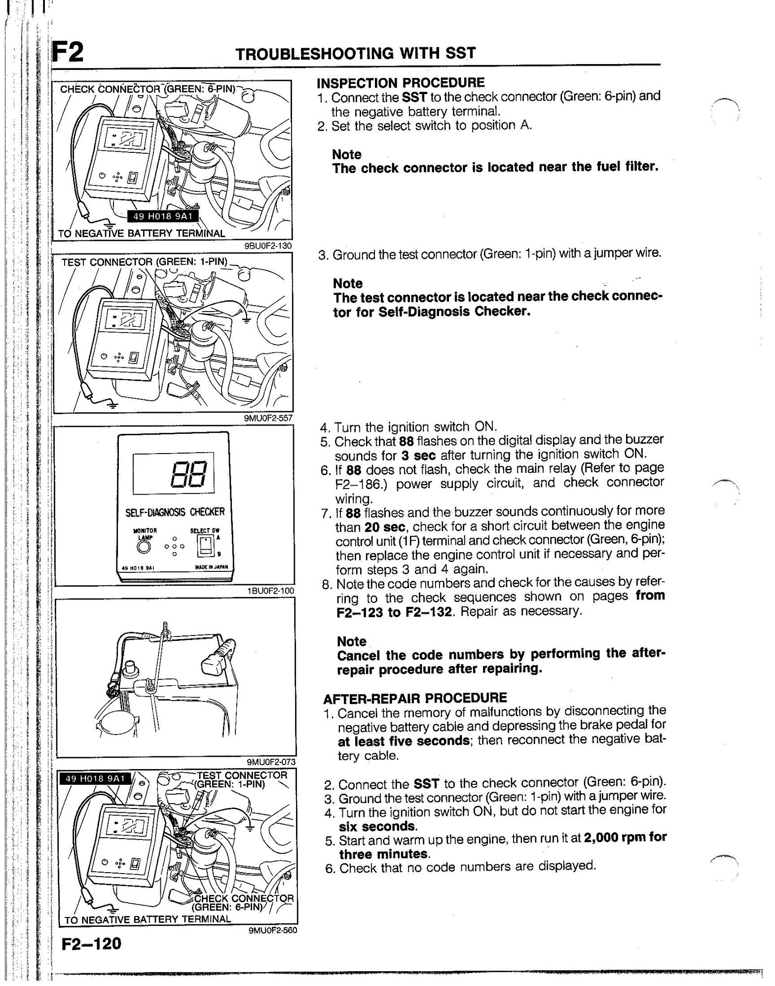 Hi I am trying to pull the code off my 90 b2600 as the check engine came on at about 200.000 miles. My understanding is you ground the green plug with the single wire thats under the hood by the wiper motor, then run a jumper wire from the A terminal to the B terminal of the other green plug thats next to it then turn ignition on and count how many times the check engine light flashes. Mine doesnt flash just stays on. Ant help would be greatly appreciated thanks.