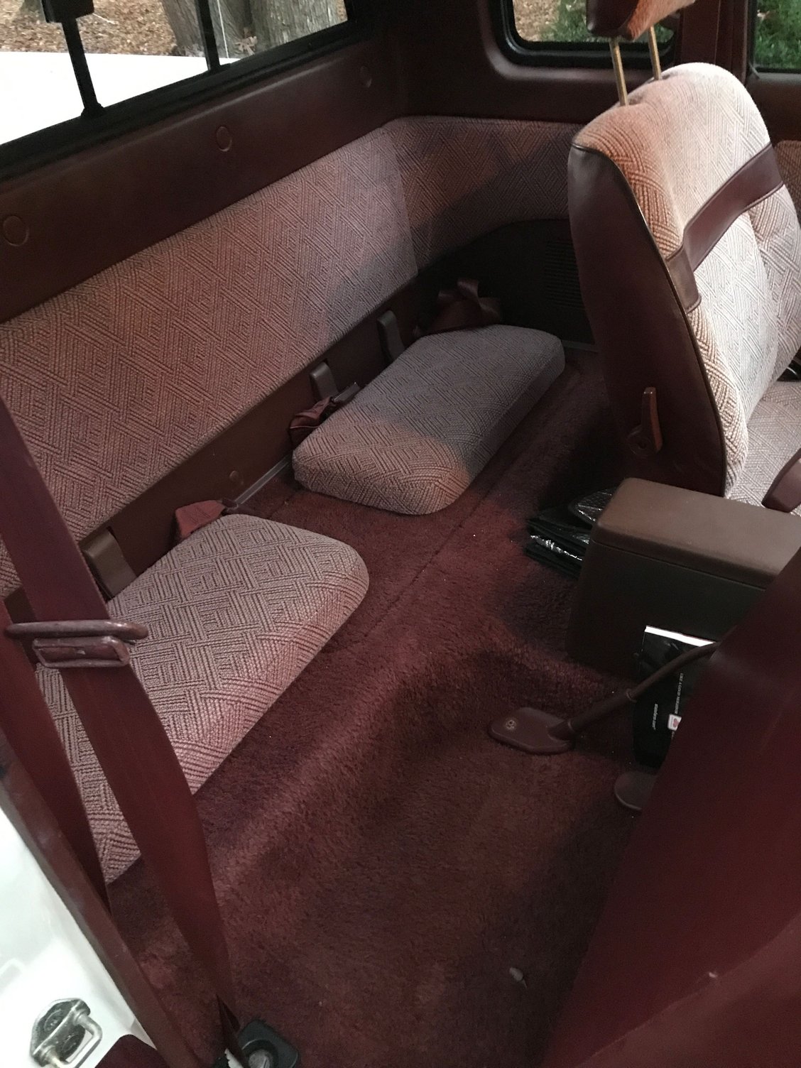Sweet original interior in very good condition - dash excellent. Only exceptions is some of the plastic on speaker covers is gone/shot and the horn buttons have degraded. The horn and cigarette lighter still don't work - they are on my list Seats look amazing Door panels good, little cracking near locks, but who cares? Back seat fine for very, very little people and groceries