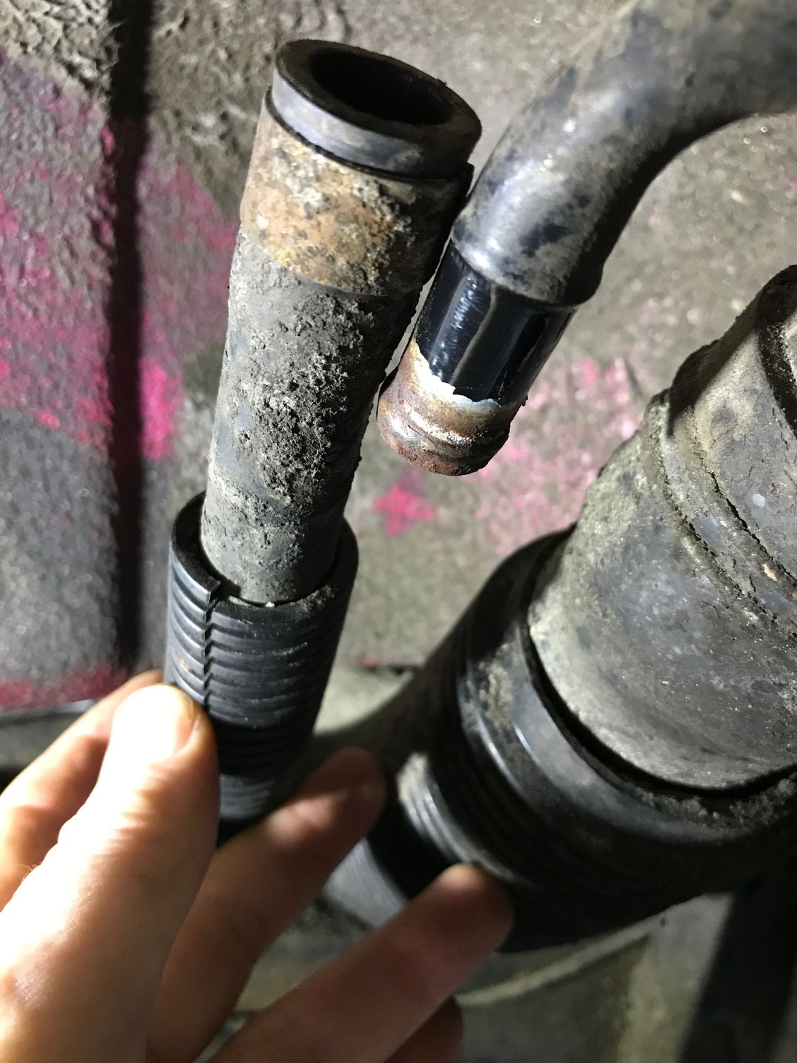 Radiator leaking, of course - found a new one Broke the pulley adjusting bolt when putting front end of the engine back together - this was one of the more expensive parts per unit value that I had to replace. There was a B2200 at the dump that got crushed the day before I broke this - missed my chance, couldn't find another local B2200, and ended up paying something stupid like $50 for the two bolts new from Ebay. Win some, lose some. First time I got it running and went to fill with fresh gas, gas poured on ground. Discovered tank vent hose was broken where it met the tank. Found some fuel rated, 5/8" ID fuel-rated hose online. All the rubber bushings for front suspension and steering were shot More shot bushings Most of the front end steering and suspension, plus oil pan and windage tray, removed from replacement/resealing