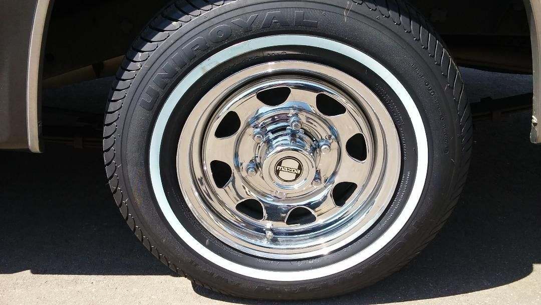 They are 14 inch wheels with Uniroyal Tiger Paw 205/75/R14 tires on them.