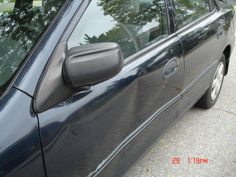 so this is probably more of a general car question but this forum has been good to me so far. so i park my car on the street overnight due to lack of driveway space. so yesterday morning i awoke to find my drivers door smashed in, obviously by another car. so insurance wont cover this and no one left a note and no one around here saw anything. basically im looking for the best solution i can do myself to get the door as close to it was before. it seems to be dented in 2 spots. a rounded sort of shape towards the front of the car and the massive dent in the centre of the door. ive posted a bunch of pics for you all to look at. hopefully we can come up with a solution, as i didnt do anything to deserve this, yet im responsible for it