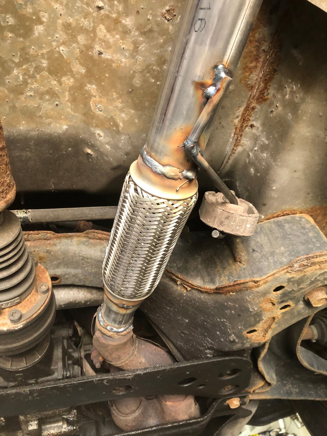 Ok so it was the flex pipe, however it was worse than anticipated as the cat and muffler both had leaks/rusted...I went with the most affordable for me witch was a flex pipe straight back. $100 and monster truck sound gone....car and acceleration are quiet as a mouse now. I can feel the power back...how does the work look? Thanks all!!