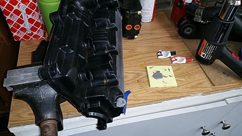 The first area of changing will be to remove the Breather tube from the valve cover. I use JB weld (tested on plastic used on engines) to do a 2 process filling insuring I don't get air bubbles in what will be a new threaded hole.