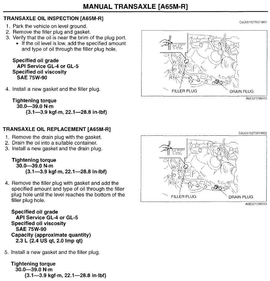 Default 05 Mazda6 3.0 manual gear oil change