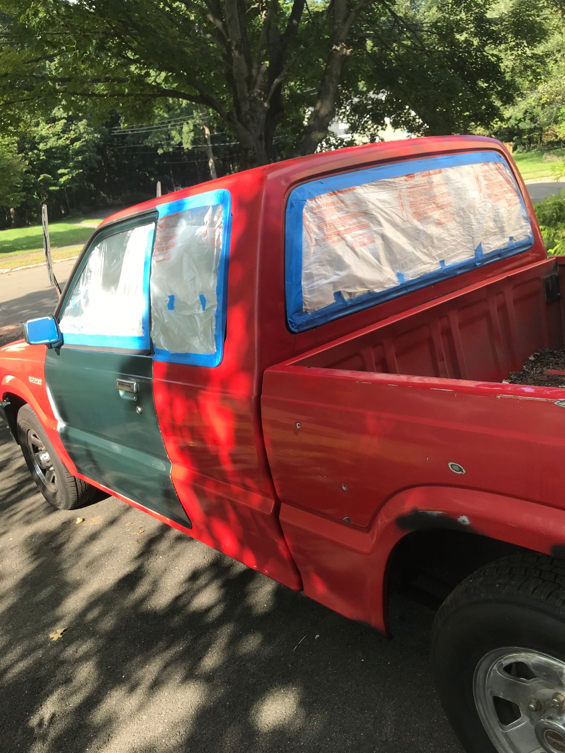 I found a neglected red 87' b2200 with no motor in it, and quickly scooped it up for another $100 in New Haven CT. it had been pushed around the yard many times and the tailgate and rear were in pretty rough shape.