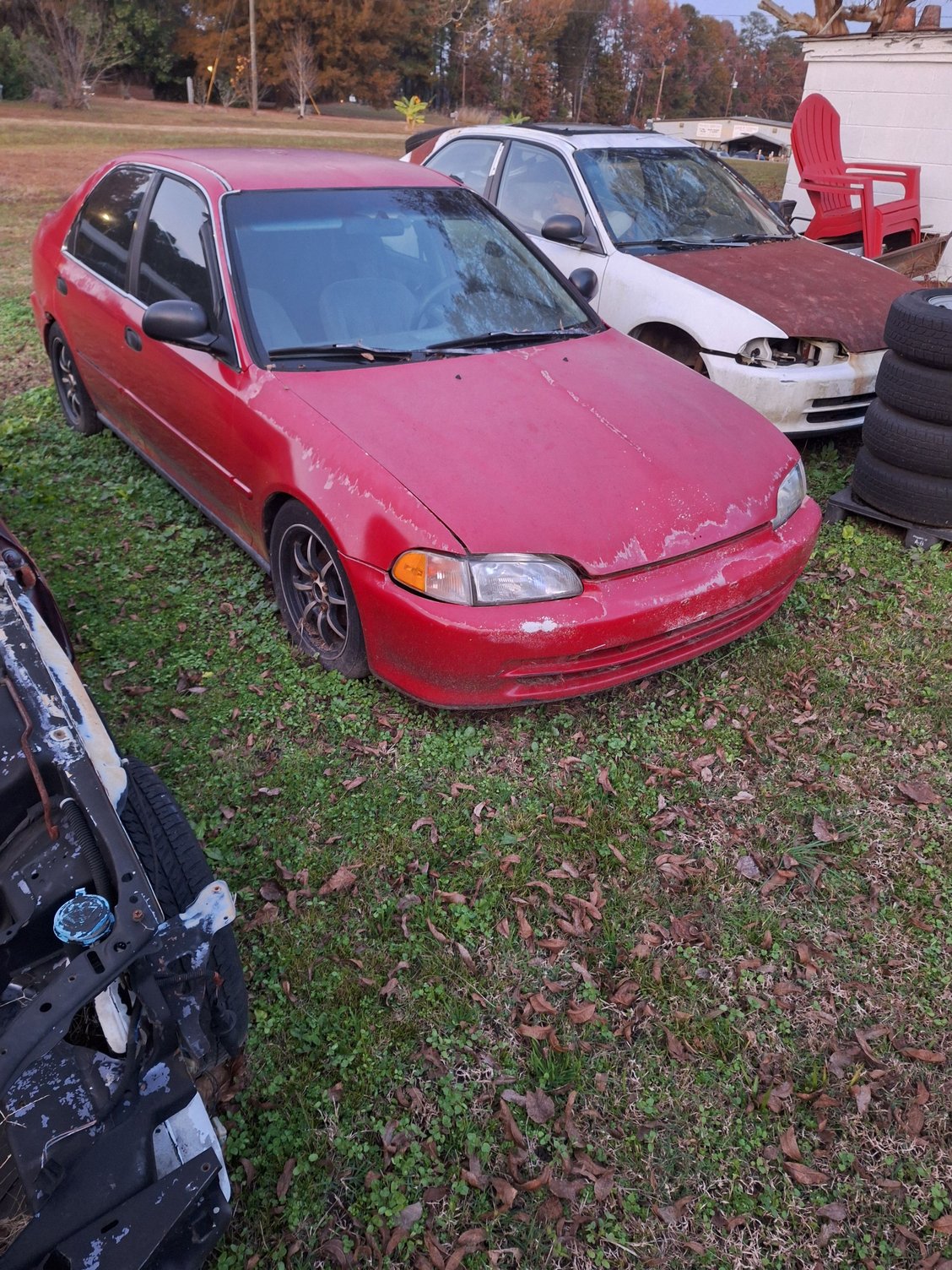 A '93 civic sedan, it is the d15b7 a 1.5l sohc 5 speed car. Been sitting about *removes shoes to count toes* 5 years or so.